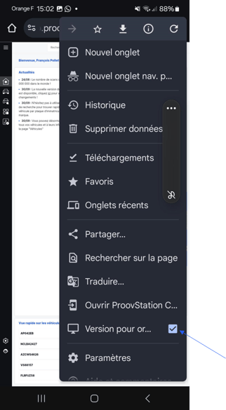 Afficher app.proovstation.com en version PC sur un téléphone portable