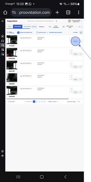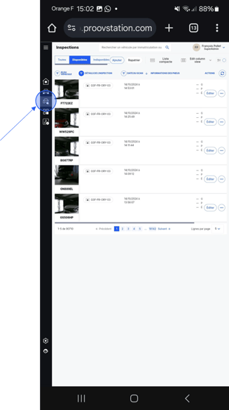 - Aller dans le menu Inspections pour afficher la liste des véhicules disponibles